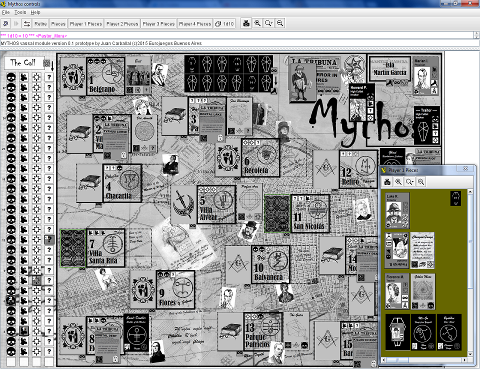 Actualmente, está terminado el prototipo en Vassal (www.vassalengine.org) lo que me permitirá compartirlo fácilmente y probarlo a distancia a través de Internet con jugadores con experiencia en juegos de este género. Además, pienso continuar llevándolo a las reuniones del Ficus Group para tener una visión clara de la dinámica de juego en vivo, y tal vez, a las reuniones de prototipos de Geek Out Buenos Aires. Allí podemos encontrarnos y probarlo, así que si les interesa no dejen de avisarme!